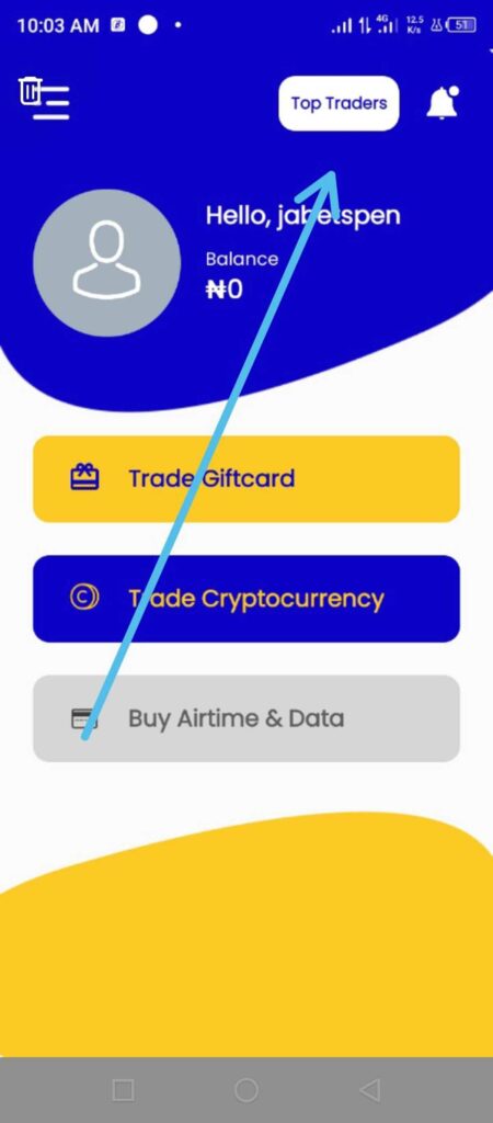 Once you have done this, you will be able to navigate to any of the options you want, either you want to, redeem gift cards, trade cryptocurrency, or buy airtime and data.